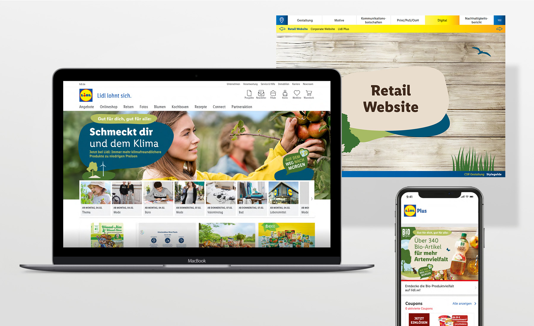 This was a long-term project for Lidl. It involved the development of CSR guidelines and the implementation of design standards across a wide range of areas and channels — internal and external.
