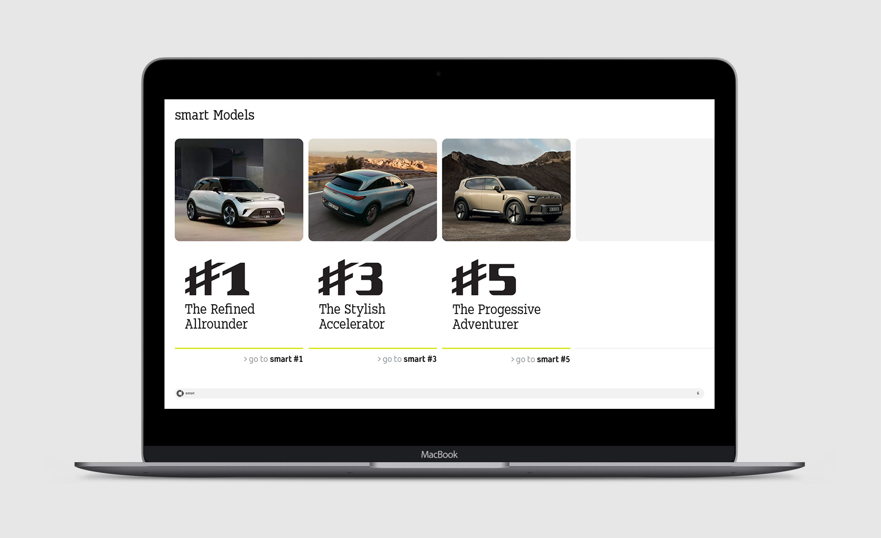 Concept development and execution of the “smart Product Compass” — an interactive guide for all markets, providing a detailed overview of the smart range for #1, #3, and #5.